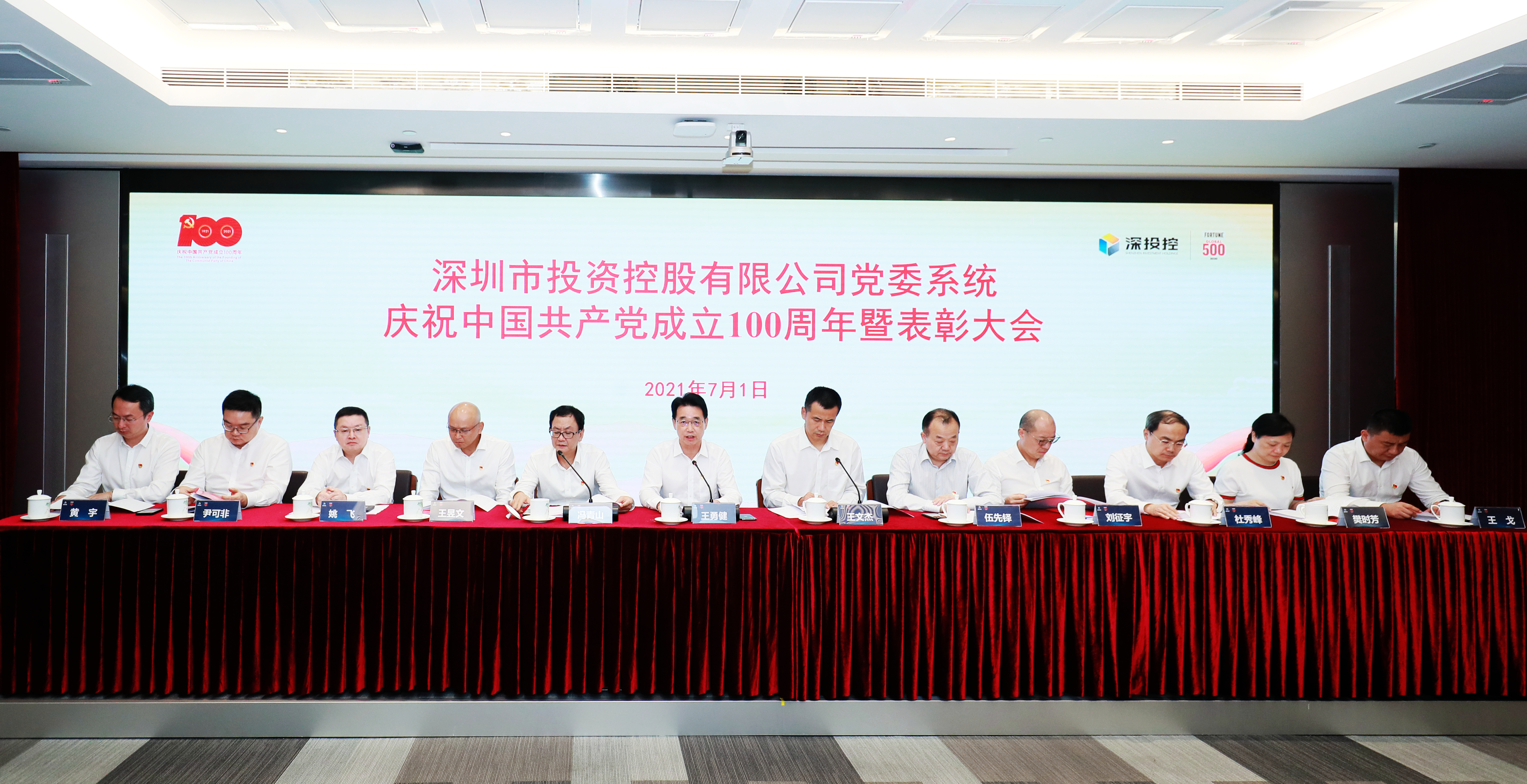 7月1日下午,深投控党委召开全系统庆祝中国共产党成立100周年暨表彰大会。会议采取“主会场+分会场”“线上+线下”相结合的方式进行,由党委副书记、总经理王文杰同志主持,深投控领导班子成员、中层正职及受表彰集体代表和个人代表在主会场参加会议。本部党员、直属企业党组织书记、党建工作分管领导和党群部门负责人在各分会场参加会议。