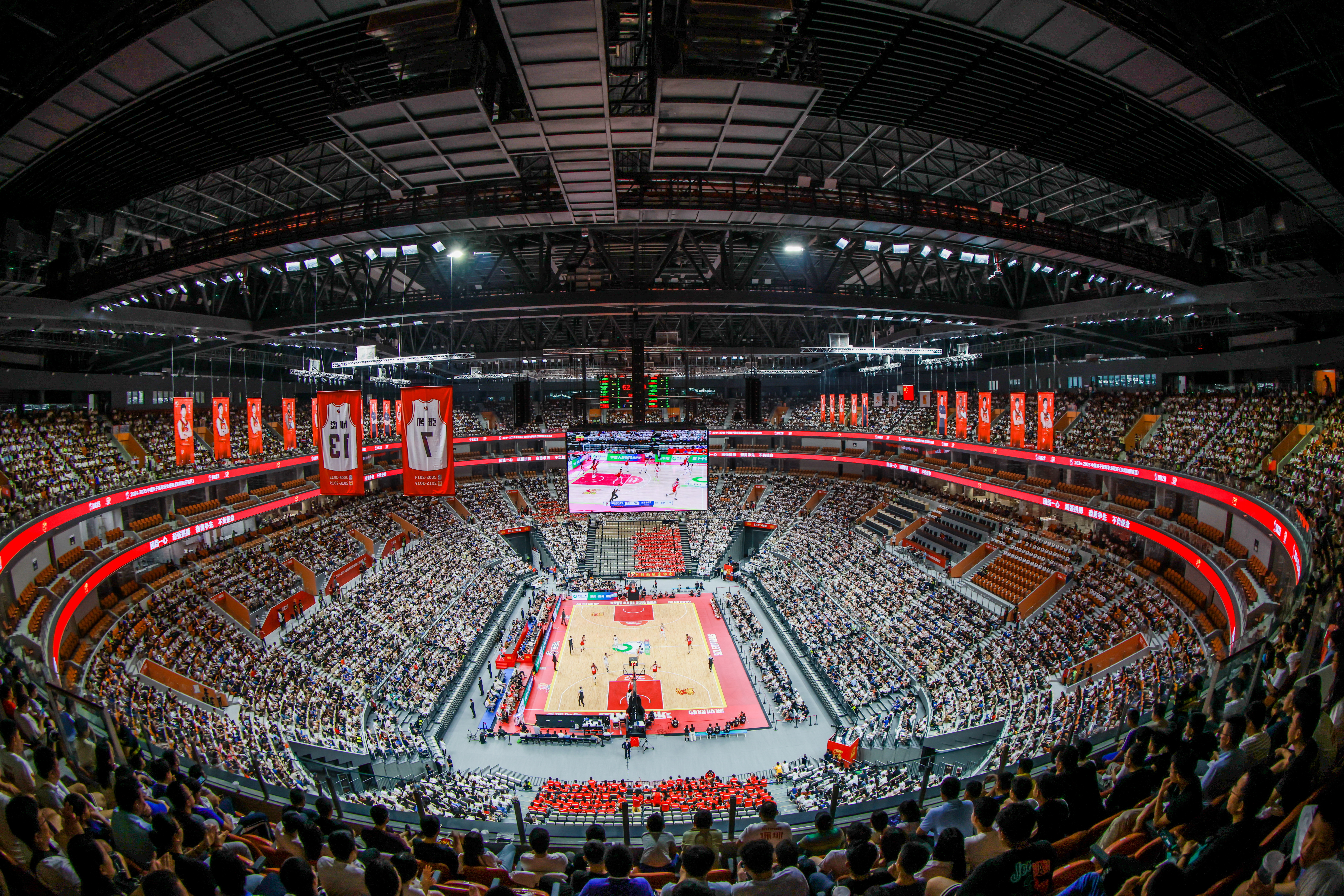改造提升后的深圳市体育中心体育馆于2024年10月投入使用,是国内首例融合“开合屋盖+可折叠移动式斗屏”技术的大型综合体育馆,可满足篮球、网球、羽毛球、体操等16项比赛的快速切换。馆内配备伸缩座椅及低区看台,使观众更贴近赛场,正中心上方的四面斗屏、环屏等高清LED显示屏共同营造出优质的视听环境,为观众带来多元化观赛体验。