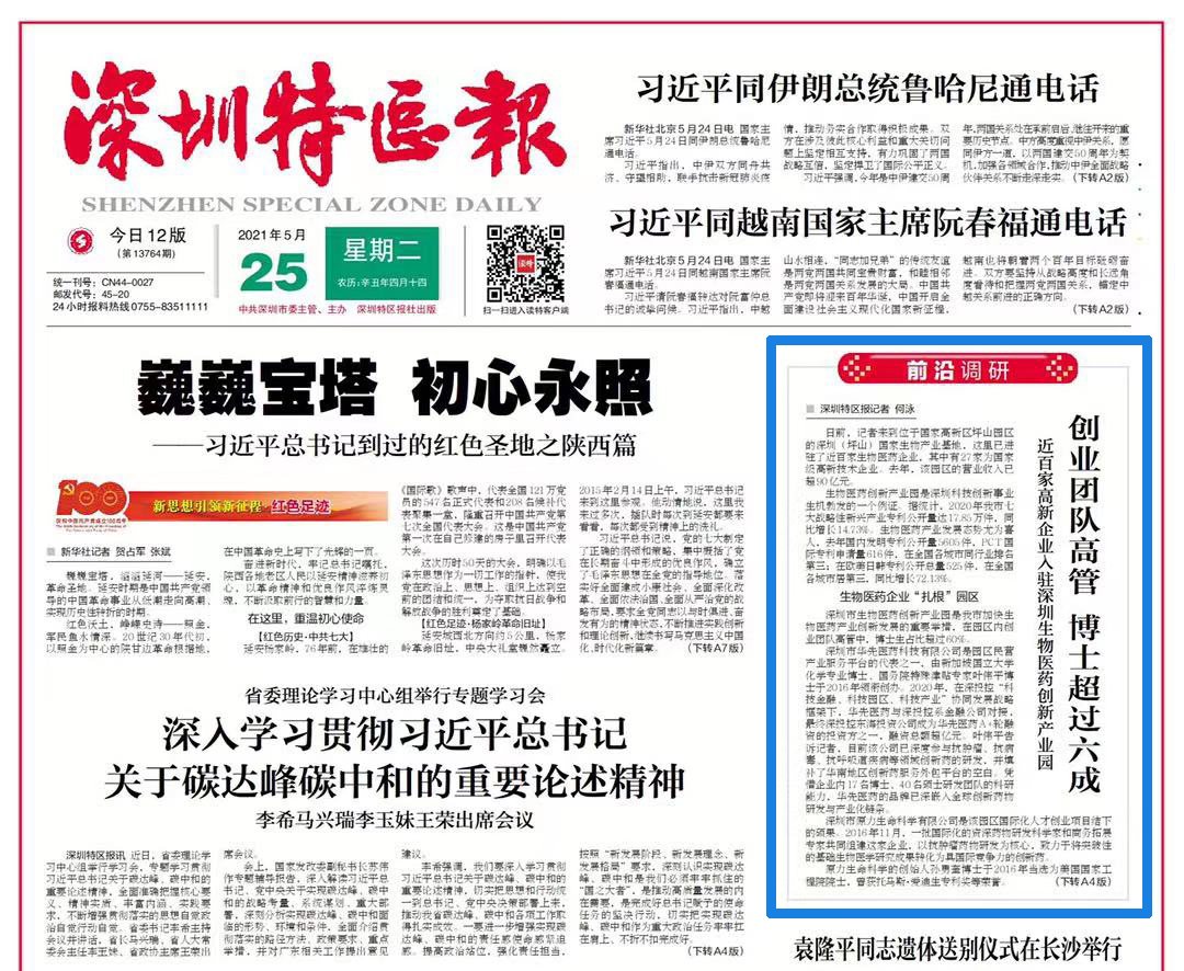 由深福保集团运营的深圳市生物医药创新产业园吸引了近百家生物研发制造企业入驻,助力深圳打造粤港澳大湾区生物医药产业核心引擎。今日,深圳特区报头版深入报道了该园区对深圳科技创新事业蓬勃发展作出的突出贡献。